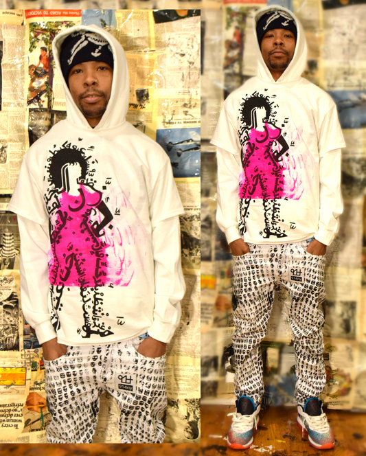Hand Painted 'High Contrast' Ouroboros Hoodie White