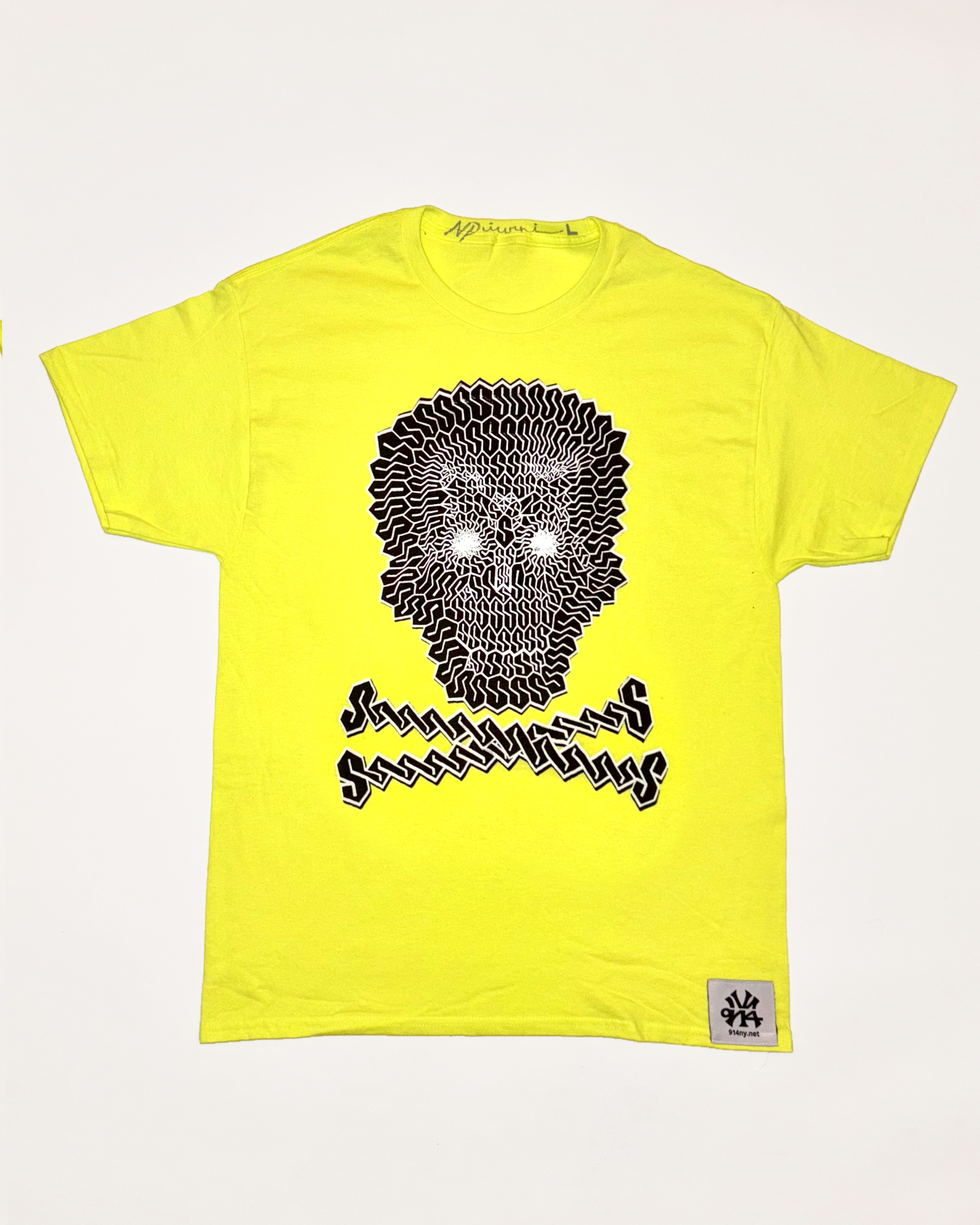 SIZE L : INFAMOUS "S" SKULL SHIRT : VOLT GREEN